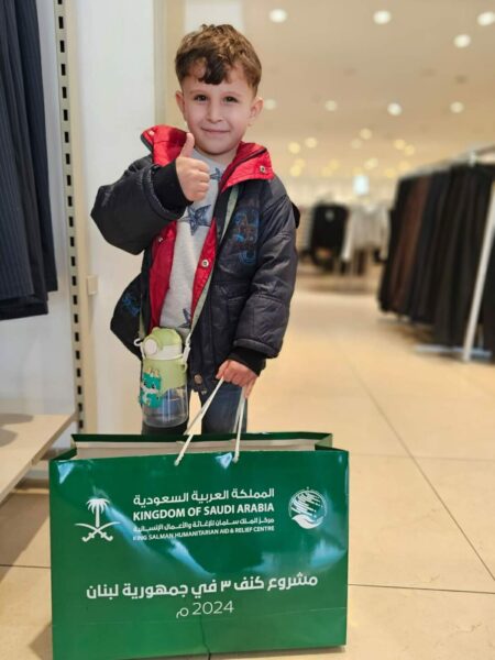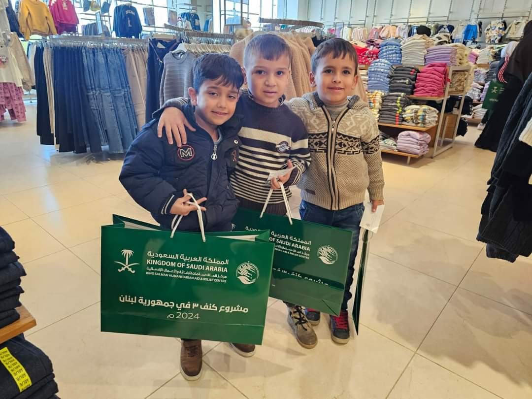 يستمر مركز الملك سلمان للإغاثة و الاعمال الانسانية بالتعاون مع جمعية الايادي  البيضاء تنفيذ مشروع كنف 3 في جمهورية لبنان لعام 2024،يشمل المشروع توزيع ملابس شتوية على المستفيدين من الاطفال الايتام و ذوي الاحتياجات الخاصة، حيث تم توزيع هذه الكسوة الشتوية داخل أحد المحلات المتخصصة في بيع الألبسة المتعاون معها المركز في مدينة طرابلس وبيروت و زحلة استفاد عدد ٤٣٠ طفل من اللاجئين السوريين  و المجتمع اللبناني المضيف القاطنين في عكار و بيروت و  جبل لبنان و البقاع.