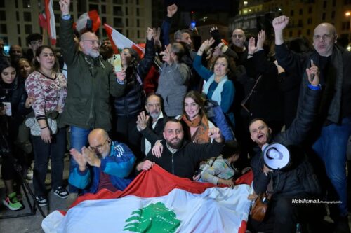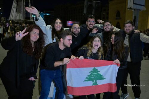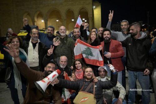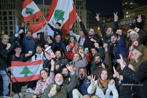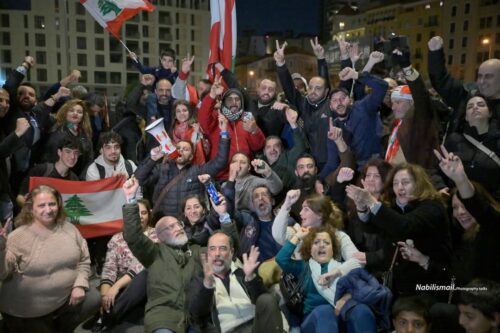 توافد عشرات من الناشطين واعضاء من المجتمع المدني في حضور بعض نواب التغيير إلى ساحة الشهداء في بيروت احتفاءً بتكليف نواف سلام تأليف الحكومة اللبنانية الأولى في عهد الرئيس جوزف عون. وسقوط بعض رموز النظام السابق ، رافعين الأعلام اللبنانية ويرقصون على وقع الأغاني الوطنية.