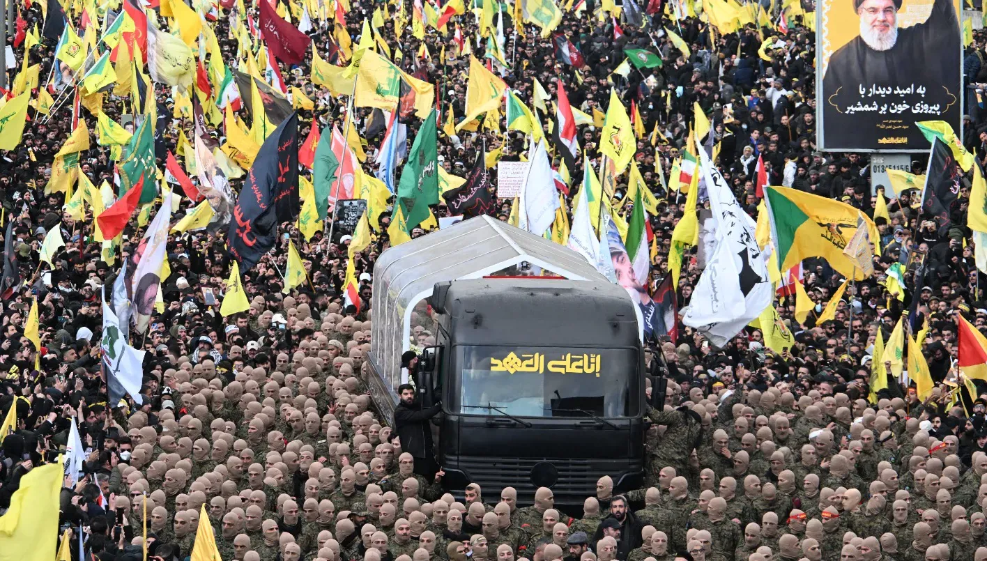 وتحمل الصورة عنوان “أسماء الشهداء القادة على طريق القدس”، في أعلاها نصرالله الذي اغتالته إسرائيل في 27 أيلول/ سبتمبر 2023، وخليفته صفي الدين الذي تمّ اغتياله بعد حوالي أسبوع.
