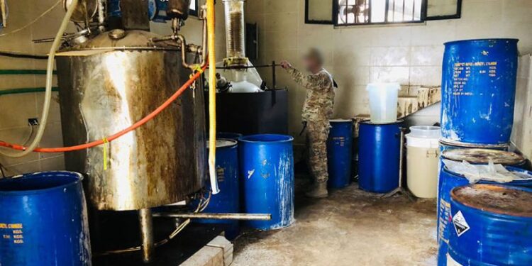 ضمن إطار مكافحة تصنيع المخدرات والاتجار بها، دهمت وحدة من الجيش تؤازرها دورية من مديرية المخابرات معملًا لتصنيع حبوب الكبتاغون عند الحدود اللبنانية السورية في منطقة حرف السماقة – الهرمل، وعملت على تفكيكه، وضبطت كمية كبيرة من هذه الحبوب، بالإضافة إلى مواد أولية تُستخدم لتصنيعها.