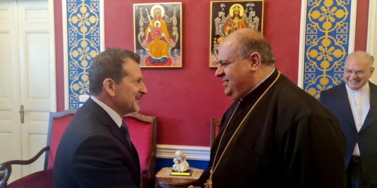 وقد رحّب المطران إبراهيم بالوزير شحادة مثنياً على الجهود التي يبذلها في الوزارتين، لا سيما في ظل الظروف الاقتصادية والاجتماعية الصعبة التي تمرّ بها البلاد. وشدّد على أهمية العمل المتكامل لإعادة بناء الثقة بين الدولة والمواطنين، سواء من خلال معالجة ملف المهجّرين أو من خلال تطوير القطاع التكنولوجي الذي يُعدّ ركيزة أساسية للنهوض بالمجتمع، ومما قال :