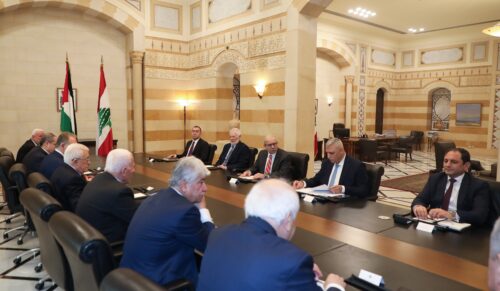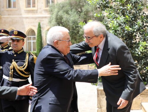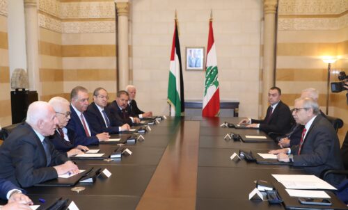وعن الجانب الفلسطيني امين سر اللجنة التنفيذية لمنظمة التحرير الفلسطينية عزام الاحمد ، السفير الفلسطيني في لبنان اشرف دبور ، عضو اللجنة التنفيذية لمنظمة التحرير الفلسطينية الدكتور احمد مجدلاني، مستشار الرئيس عباس للشؤون الدبلوماسية الدكتور مجدي خالد، سفير فلسطين لدى الامم المتحدة الدكتور رياض منصور، امين سر حركة “فتح” وفصائل منظمة التحرير الفلسطينية في لبنان فتحي أبو العردات، إلى جانب المستشارين ياسر عباس ووائل لافي.