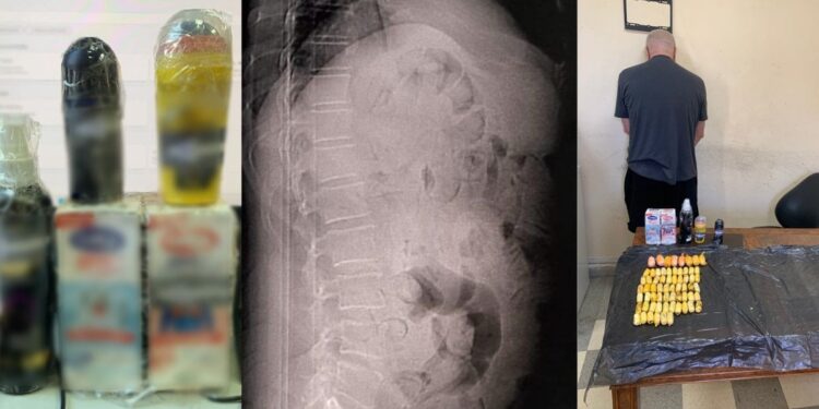 كما أظهرت صورة شعاعية أجريت لجسم المشتبه به وجود 65 كبسولة من الكوكايين داخل الأحشاء، بلغ وزنها الإجمالي 769 غرامًا.