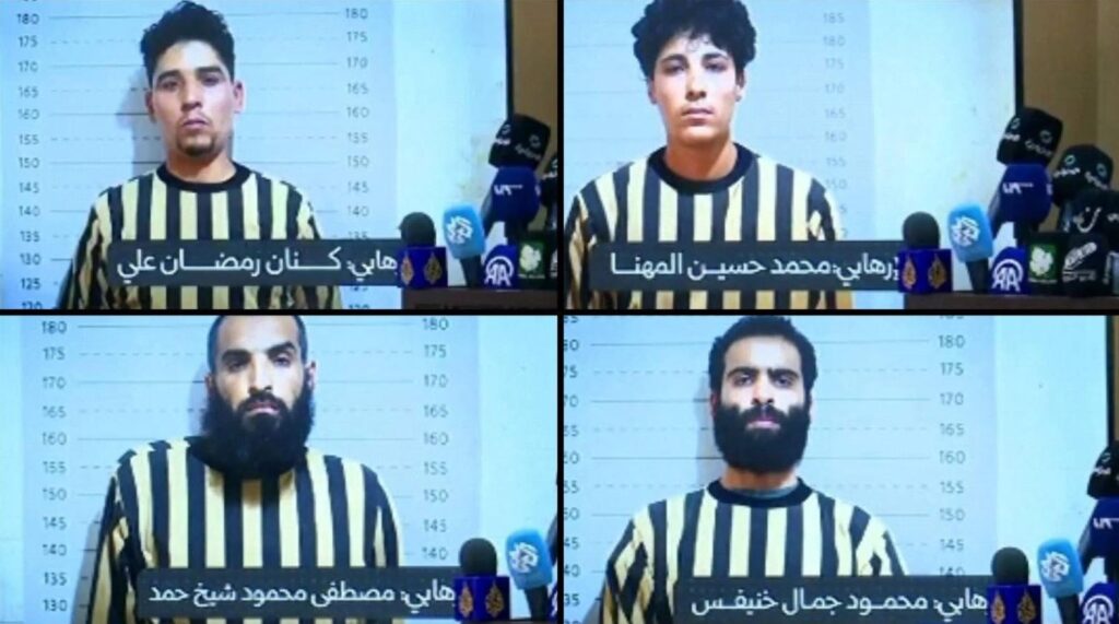 أما الانتحاريان، فالأول الذي نفذ تفجير الكنيسة الغادر، والثاني الذي ألقي القبض عليه، وهو في طريقه لتنفيذ تفجير انتحاري في مقام السيدة زينب في ريف دمشق، فقد قدما إلى دمشق من مخيم الهول، عبر البادية السورية، وتسللا بعد تحرير العاصمة، بمساعدة المدعو أبي عماد الجميلي، مستغلين حالة الفراغ الأمني بداية التحرير، وهما غير سوريين.