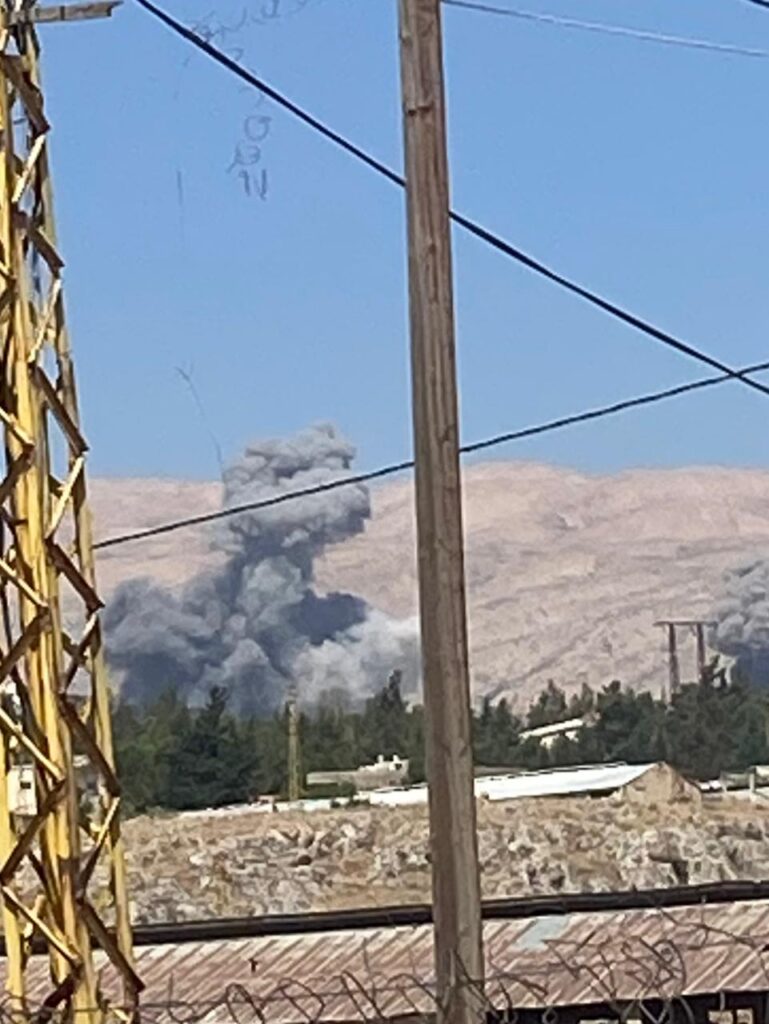اما على السلسلة الشرقية استهدف بسلسلة غارات مرتفعات بريتال في منطقة النبي اسماعيل والنبي سريج بين بلدتي بريتال والخريبة وبلغ عدد الغارات التقريبي حتى الساعة ١٦ غارة .
