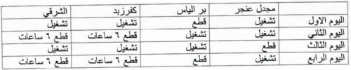 أعلنت مؤسسة مياه البقاع أنه “نظرًا لهبوط مستوى المياه في نبع شمسين، تعلن مؤسسة مياه البقاع عن اعتماد برنامج تقنين في تشغيل المضخات، وذلك وفق الجدول أدناه، ابتداءً من تاريخ ٢ أيلول ٢٠٢٥، ولحين عودة منسوب المياه إلى وضعه الطبيعي”.