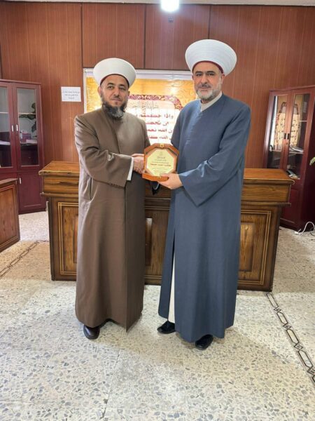 قام وفد من دار الفتوى في راشيا بزيارة رئيس محكمة برالياس الشرعية السنية عدالة القاضي الشيخ طالب أحمد جمعة ،وتم تقديم درع تهنئة ومباركة له ،متمنين له التوفيق والسداد.