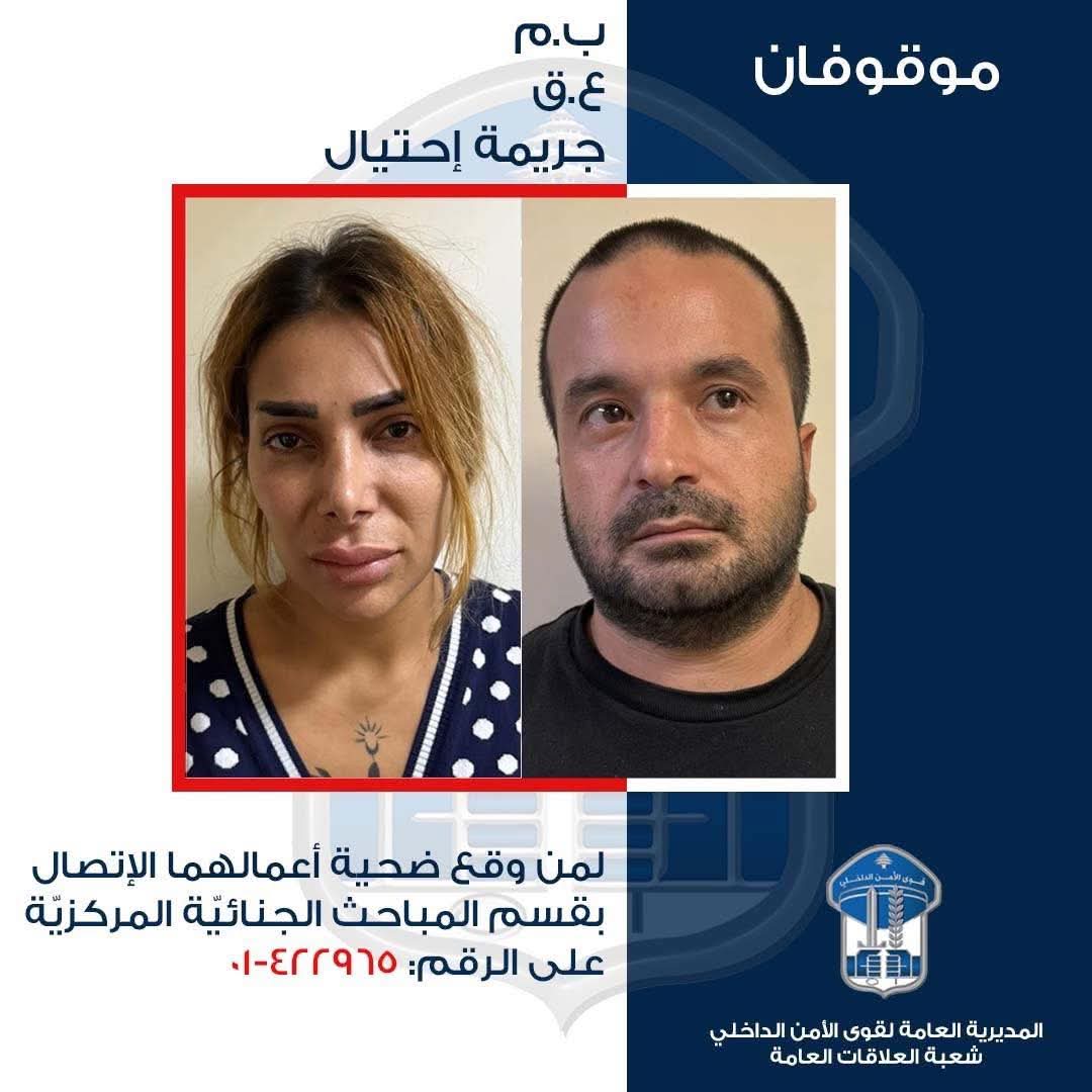 لذلك، وبناءً على إشارة القضاء المختص، تطلب هذه المديريّة العامّة من الذين وقعوا ضحيّة أعمالهما وتعرفوا إليهما، الاتّصال بقسم المباحث الجنائيّة المركزيّة في وحدة الشّرطة القضائيّة على الرّقم: