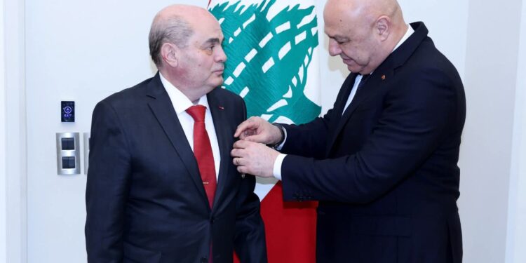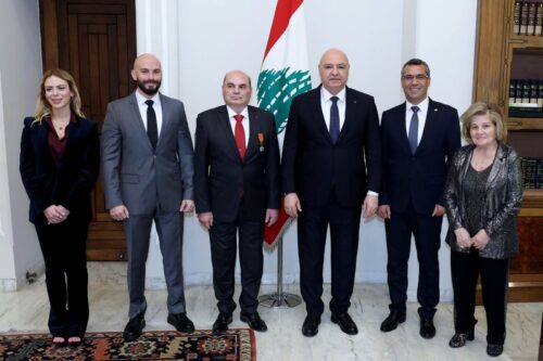 كرّم الرئيس العماد جوزاف عون رئيس مجلس الإدارة المدير العام لمصلحة الأبحاث العلمية الزراعية الدكتور ميشال افرام, في حضور وزير الزراعة الدكتور نزار هاني وافراد عائلة المكرم.