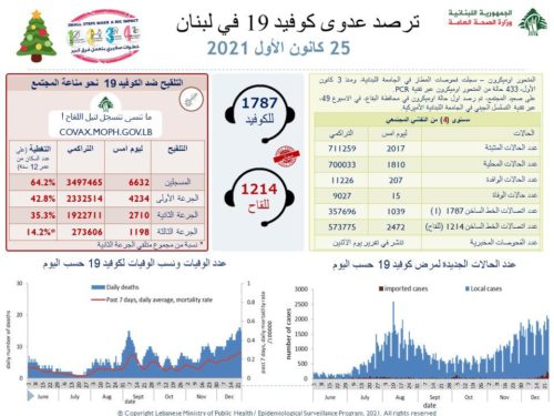 أعلنت وزارة الصحة العامة في تقريرها اليومي تسجيل 2017 إصابة جديدة بفيروس كورونا و15 حالة وفاة خلال الساعات الـ24 الماضية.