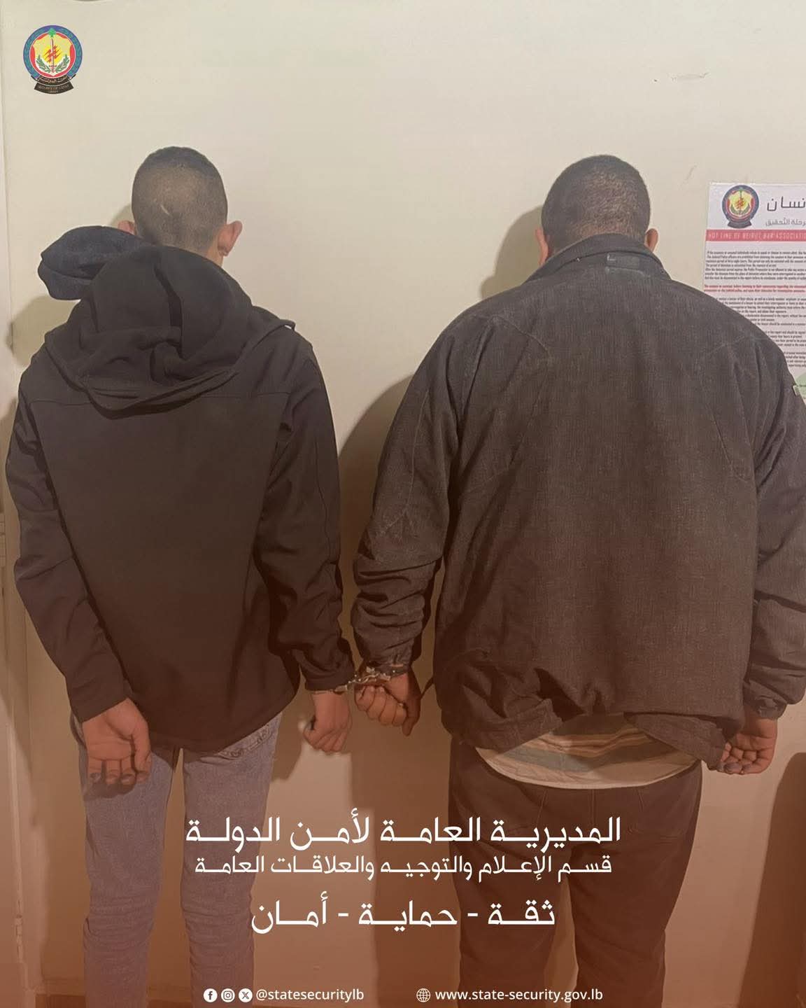 في إطار الجهود الأمنية المتواصلة التي تبذلها المديرية العامة لأمن الدولة لمكافحة الجرائم والحفاظ على الأمن، وبنتيجة متابعة دقيقة، أوقفت دورية من مديرية البقاع الإقليمية – مكتب زحلة، وخلال أقل من 48 ساعة المدعوين (ي.س.مكتوم القيد – ح.ي. سوري الجنسية)، بعد قيامهما بسرقة مبلغ مالي قدر ب 12 ألف دولار أميركي من محل Whish Money في منطقة الغبيري، بتاريخ ٤/٢/٢٠٢٦ بواسطة الكسر والخلع.