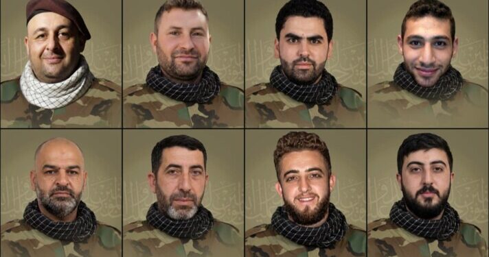 وبحسب الإعلام الحربي، فإن “بمزيد من الفخر والإعتزاز، زفت المقاومة الإسلامية الشهيد القائد المجاهد ​حسين محمد ياغي​ “أبو علي صادق” مواليد عام 1984 من مدينة بعلبك، والشهيد المجاهد ​محمد إبراهيم الموسوي​ “علي حسين” مواليد عام 1980 من بلدة النبي شيت، والشهيد المجاهد علي زيد الموسوي “ناصر” مواليد عام 1990 من بلدة النبي شيت، والشهيد المجاهد أحمد حسين الحاج حسن “مجاهد” مواليد عام 1987 من بلدة شعث، والشهيد المجاهد قاسم علي مهدي “عبد المطلب” مواليد عام 1981 من بلدة علي النهري، والشهيد المجاهد أحمد محمد زعيتر “أشتر” مواليد عام 1996 من بلدة ريحا والشهيد المجاهد حسنين ياسر السبلاني “عذاب” مواليد عام 1997 من بلدة شمسطار”.