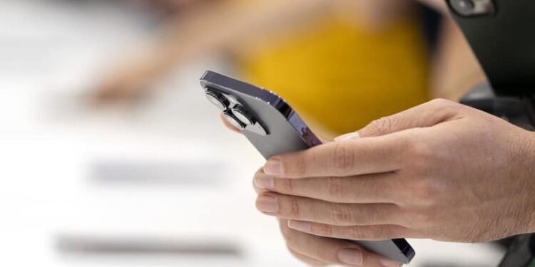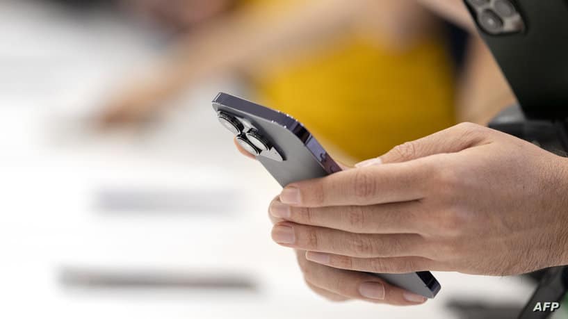 An attendee holds a new iPhone Pro Max at an Apple event at Apple Park in Cupertino, California, on September 7, 2022. - Apple unveiled several new products including a new iPhone 14, iPhone 14 Plus, 14 Pro and iPhone 14 Pro Max. They also released three Apple watches and new AirPods Pros during the event. (Photo by Brittany Hosea-Small / AFP)