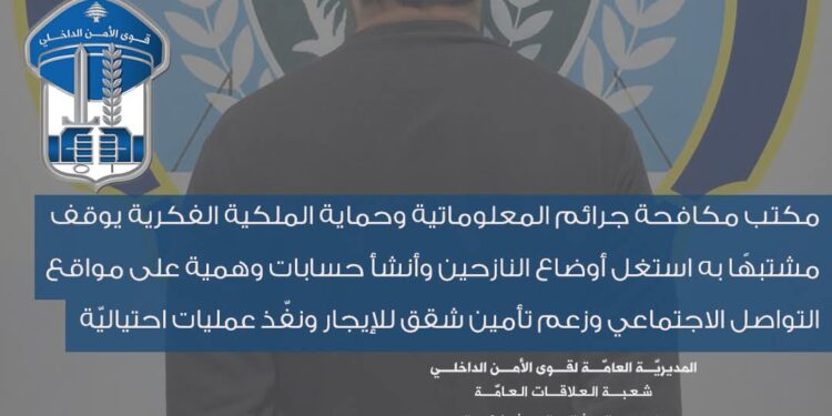 • توقيف مشتبه به بالاحتيال عبر حسابات وهمية لاستغلال النازحين