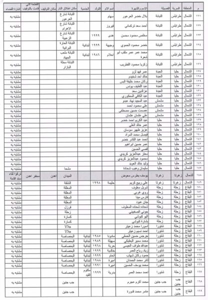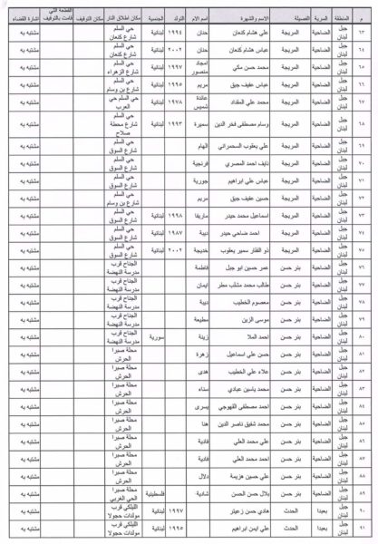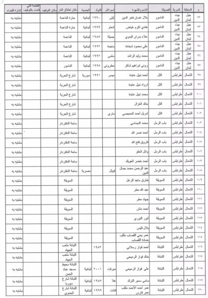 ربطًا لائحة بأسماء المشتبه بهم بإطلاق النار.