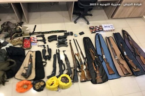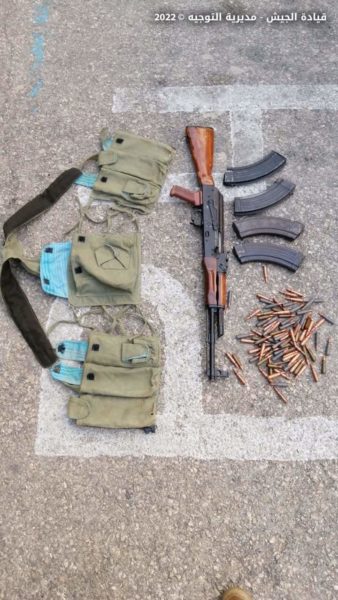 بتاريخي ٣ و٤ / ١ / ٢٠٢٢ نفذت وحدات من الجيش المنتشرة في البقاع والشمال عمليات دهم منازل مطلوبين أقدموا على إطلاق النار في الهواء لمناسبة عيد رأس السنة الميلادية وأوقفت ٣٩ شخصاً وضبطت بحوزتهم ٧ أسلحة حربية نوع كلاشنكوف و٦ مسدسات وعدداً من بنادق الصيد وكمية من الذخائر العائدة لها بالإضافة إلى ٤ رمانات يدوية وكمية من حشيشة الكيف.