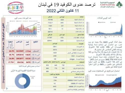 أعلنت ​​وزارة الصحة العامة، في تقريرها اليومي، عن “تسجيل 6665 حالة جديدة مُصابة بفيروس “كورونا” المستجد (​كوفيد 19​) عن يوم أمس، ليرتفع العدد التراكمي للإصابات منذ 21 شباط 2020، إلى 787498″.