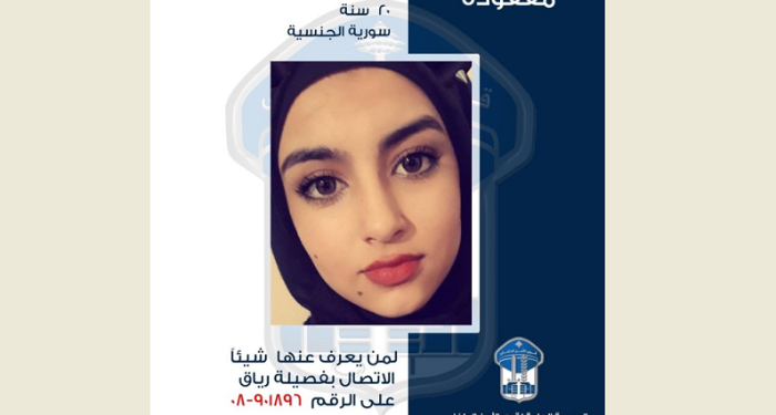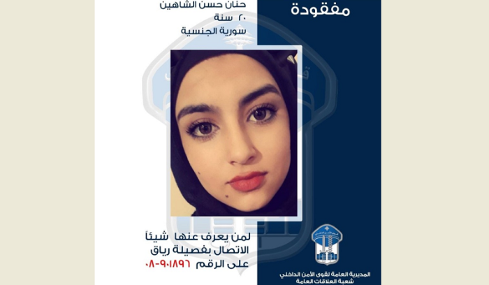 صدر عن المديرية العامة لقوى الامن الداخلي ـ شعبة العلاقات العامة البلاغ التالي: “تعمم المديرية العامة لقوى الأمن الداخلي، بناء على إشارة القضاء المختص، صورة المفقودة حنان حسن الشاهين (مواليد عام 2002، سورية)، التي غادرت بتاريخ 17-1-2022 منزل ذويها الكائن في محلة حارة الفيكاني/ قضاء زحلة الى جهة مجهولة، ولم تعد لغاية تاريخه.