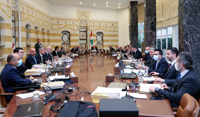 “عقد مجلس الوزراء جلسة برئاسة رئيس الجمهورية العماد ميشال عون وحضر رئيس مجلس الوزراء نجيب ميقاتي والوزراء الذين غاب منهم وزير العدل الموجود في العراق في زيارة رسمية.