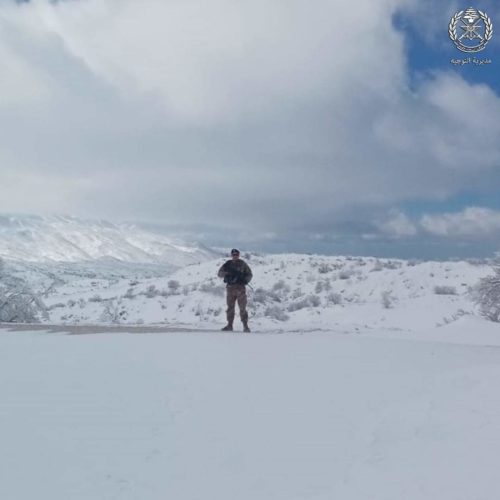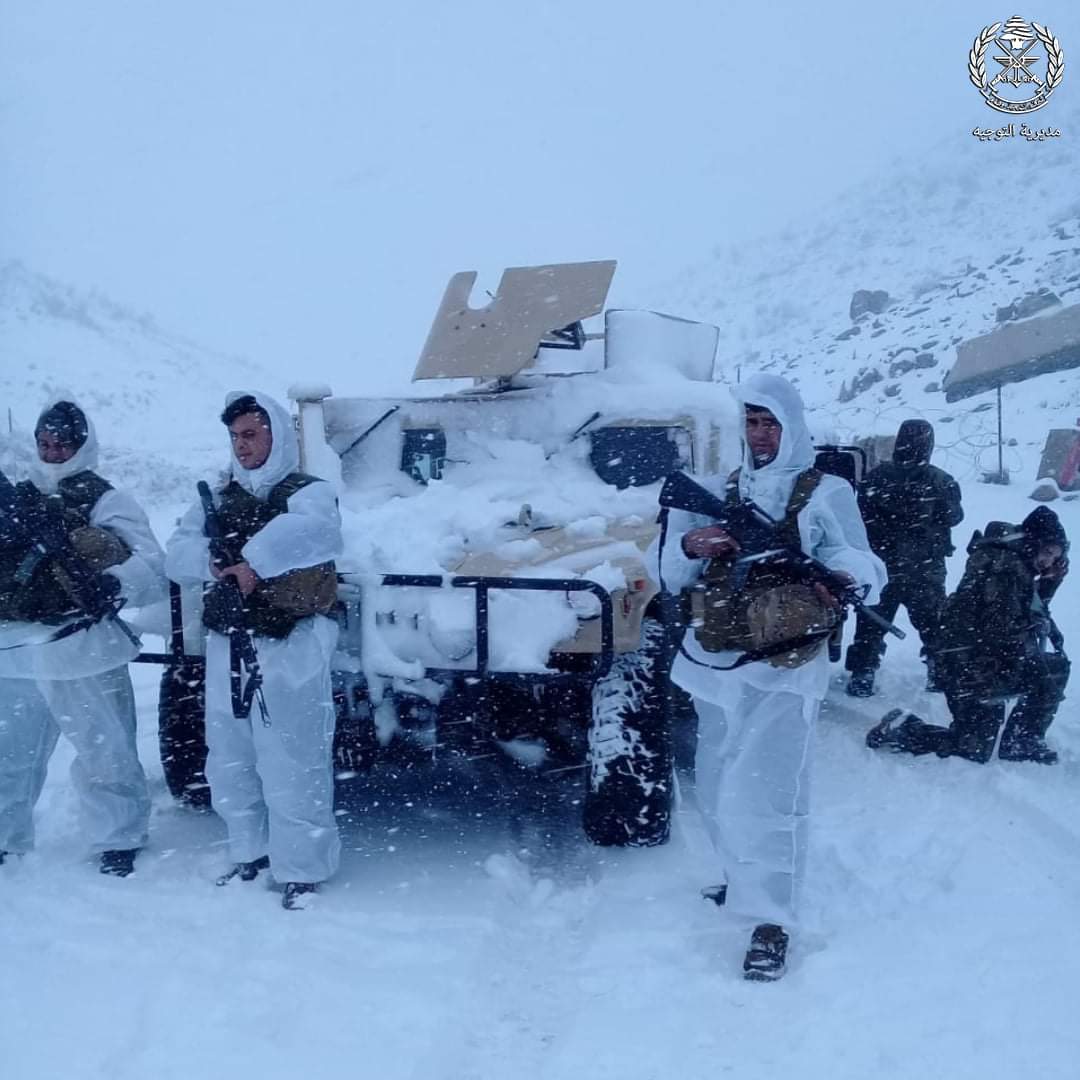 نشر الجيش اللبناني عبر مواقع التواصل الإجتماعي صوراً لعدد من العناصر وسط الثلوج في إحدى المناطق الجبلية، وعلّق كاتباً، “بيسألونا: بردانين؟ أبداً… قلوبنا دفيانة بمحبة شعبنا”.​