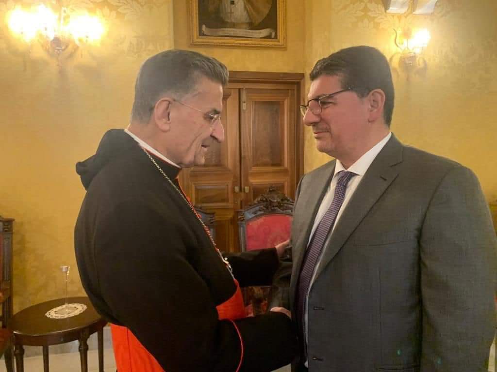 في اول لقاء له مع مرجعية لبنانية بهاء الحريري يلتقي البطريرك الراعي في روما
