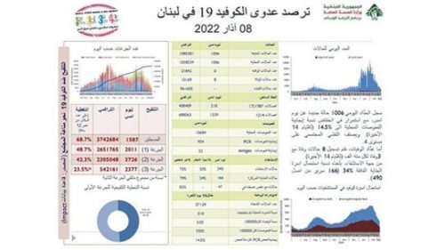 أعلنت وزارة الصحة تسجيل 1006 إصابات جديدة بكورونا و8 حالات وفاة في الـ24 ساعة الماضية.
