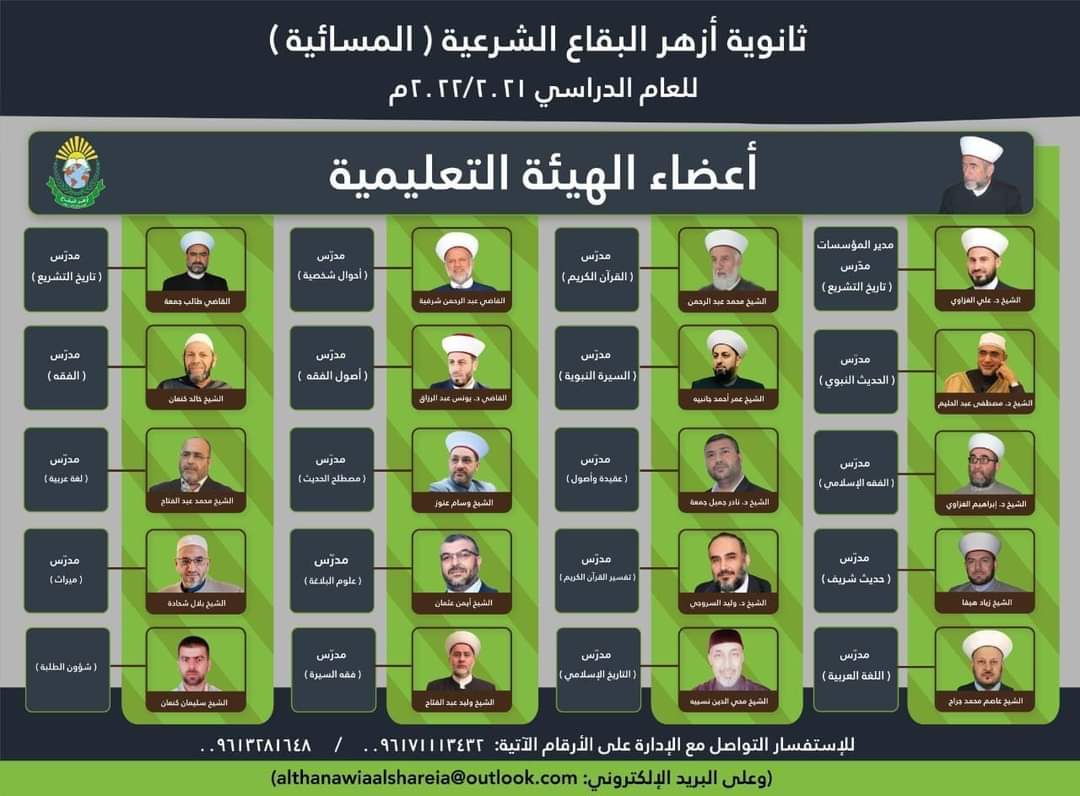 تعلن إدارة الثانوية الشرعية المسائية إحدى مؤسسات أزهر  البقاع التابعة لدار الفتوى في البقاع عن استمرار التسجيل للعام الدراسي ٢٠٢١-٢٠٢٢م