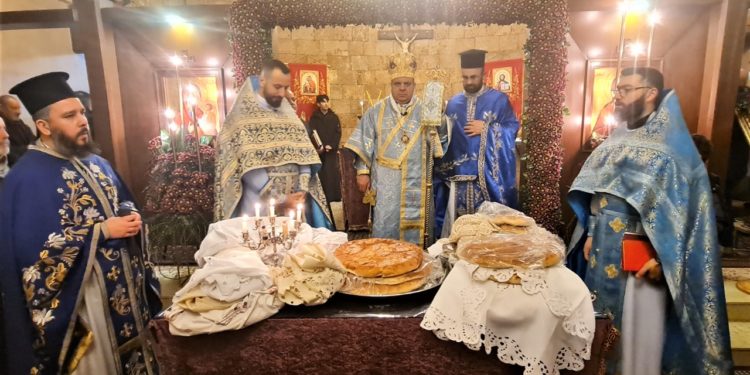 وترأٍس سيادته صلاة الغروب والقداس الإحتفالي بمشاركة الآباء شربل أوبا، جاورجيوس شبوع، باسيليوس كنعان وباخوميوس زعرب، وخدمته جوقة مار الياس المخلصية بقيادة فادي نحاس بحضور جمهور المؤمنين.