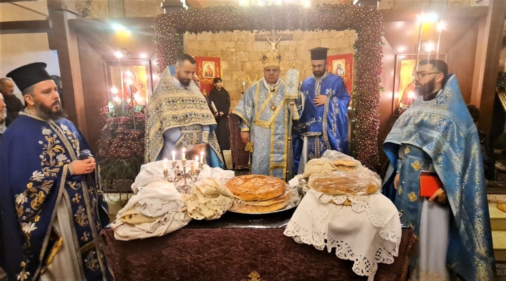 وترأٍس سيادته صلاة الغروب والقداس الإحتفالي بمشاركة الآباء شربل أوبا، جاورجيوس شبوع، باسيليوس كنعان وباخوميوس زعرب، وخدمته جوقة مار الياس المخلصية بقيادة فادي نحاس بحضور جمهور المؤمنين.