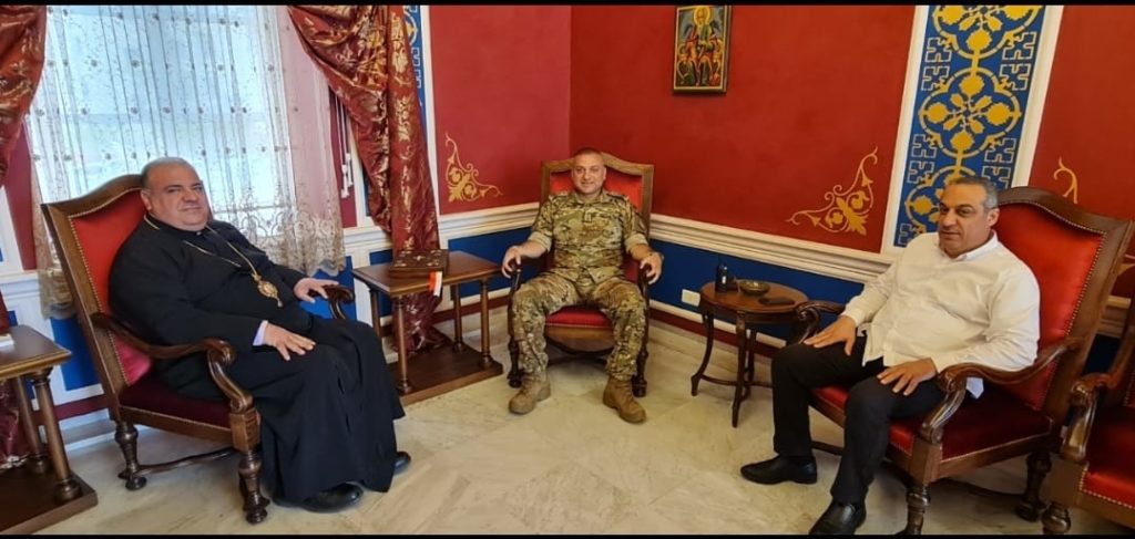 استقبل رئيس اساقفة الفرزل وزحلة والبقاع للروم الملكيين الكاثوليك المطران ابراهيم مخايل ابراهيم قائد فوج التدخل السادس في الجيش اللبناني العقيد الركن المغوار دافيد بشعلاني يرافقه السيد كابي فرج وعرض معه الأوضاع في منطقة زحلة والبقاع ودور الجيش اللبناني في حفظ الأمن.