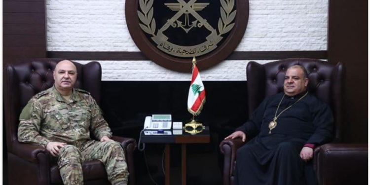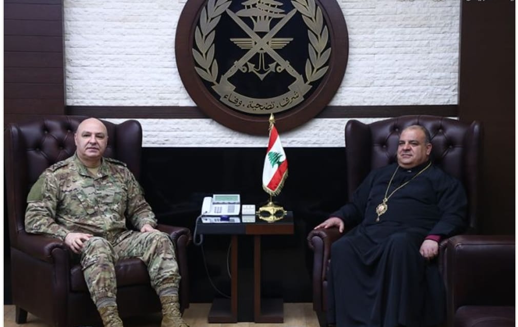 زار رئيس اساقفة الفرزل وزحلة والبقاع للروم الملكيين الكاثوليك المطران ابراهيم مخايل ابراهيم قائد الجيش العماد جوزف عون في مكتبه وعرض معه الأوضاع الأمنية في البلاد والدور المحوري والأساسي الذي يقوم به الجيش اللبناني في حفظ الامن وفرض النظام لا سيما في زحلة والبقاع.