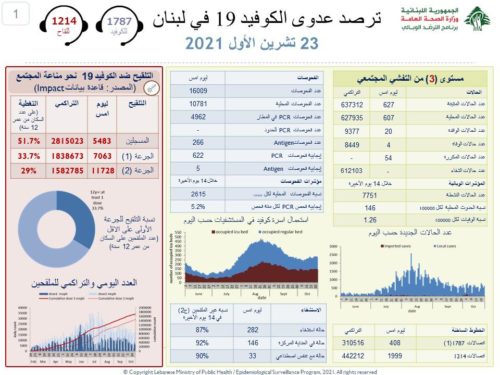 أعلنت وزارة الصحة العامة تسجيل 627 إصابة جديدة بكورونا و4 حالات وفاة في الساعات الـ24 الماضية.