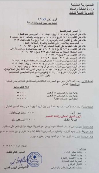 المازوت: 681000 (ارتفاع 3 الاف ليرة)