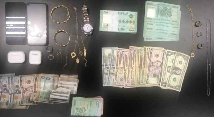 وذكرت المديريّة أنّه “تمّ إحضار الأخير، وباستماعه اعترف أنّه قام بعمليّات سرقة متعدّدة من داخل حقائب المسافرين، في تواريخ سابقة”، مشيرةً إلى أنّ “على أثر ذلك، توجّهت دوريّة من الفصيلة المذكورة بمؤازرة دوريّة من فصيلة المريجة في وحدة الدّرك الإقليمي إلى منزليهما، حيث ضبطت: مبالغ ماليّة من عملات مختلفة، مصاغ من ​الذهب​ والفضّة، هاتفان خلويّان، وساعة يد باهظة الثّمن”.