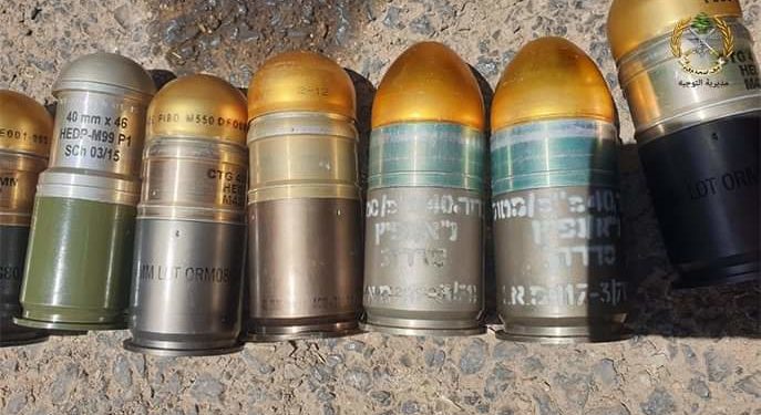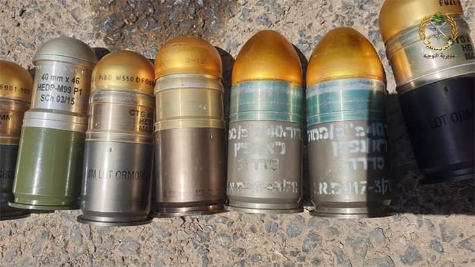 الجيش اللبناني يعلن ضبط رمانات بندقية لقاذف Launcher تحمل كتابات عبرية و كمية من الأسلحة الحربية والذخائر خلال عمليات الدهم المستمرة في الشراونة