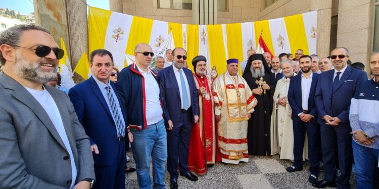 وأضاف ” أيها الأحباء، كم أنا مُباركٌ أن أكون في سيرٍ سينودُسيٍ مع أصحابِ السيادةِ أساقفةِ هذه المدينة، الجامعةِ في أحضانها كنائسَنا المتنوعةِ في مسكونيةٍ ووحدةٍ غنيةٍ، ظاهرةٍ، فريدة، مميزة. كم أنا مُباركٌ أني انضممتُ إلى طَغْمَةٍ من الكهنة الورعين والشمامسة الغيارى والرهبان والراهبات الاتقياء الذين أحبوا الناس على قدرِ حُبهم لله. الآن أود أن أذكر بنوع خاص قدس الأب مسعود أبو حاطوم من أبرشية الجليل للروم الملكيين الكاثوليك الكاهنَ في مدينة العذراء: الناصرة، وقد جاء خصيصاً للمشاركة بخميس الجسد الالهي في مدينة زحلة حاملا إلينا معه بركة الأراضي المقدسة.