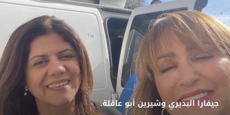 نشرت مراسلة “الجزيرة” من الضفة الغربية #جيفارا البديريعبر صفحتها في “فايسبوك” صورة جمعتها بالصحافية #شيرين أبو عاقلة، وكتبت: “جنين… صباح الثلاثاء 10/ 5 /2022 … الساعة 10:55… وصلت شيرين على جنين؛ تستلم مني التغطية، اتفقنا نتعشى سوا؛ الخميس بالليل أو الجمعة؛ عشان احتفل بعيد ميلادها؛ لأني لم أحتفل معها واستبدلت معها العمل في جنين، لتحتفل قبلها بشهر؛ وهذا نادراً ما يحدث… سألتها: شوشو؛ خلصيني؛ شو الهدية؟ تعبت وأنا أسألك! قالت لي: خلص جيغو؛ بكرا الظهر “الأربعاء” بقول لك على الأكيد… وفجأة ضحكنا؛ وقلنا ناخد آخر صورة… ما بنعرف شو بيصير… لم يأتِ ظهر الأربعاء… ولا أعرف إلى اليوم ماذا كانت الهدية… ولم ولم يأتِ العشاء… أربعون يوماً على هذه الابتسامة يا شوش… اليوم أول مرة أتجرأ أن أنظر إلى الصورة… ورأيت ابتسامتك… الابتسامة التي تملأ السماء والأرض… شيرين بابتسامتها نقلت بصوتها ودمها وجنازتها معاناة شعب إلى أصقاع الأرض… شعب لا يريد إلا الحرية… لا نلبس الأسود حداداً؛ بل غضباً حتى تحقيق العدالة لك وللصحفيين وكل شهداء فلسطين… كل يوم أصعب بغيابك… أشتاق لك”.