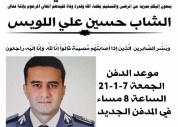 قضى الشاب حسين اللويس وهو من عناصر الامن العام على اثر حادث صدم تعرض له على طريق دير زنون في...