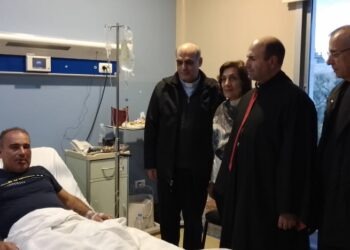 تفقد المطران جوزف معوض راعي ابرشية زحلة المارونية المهندس الزراعي عبدالله حنا في مستشفى تل شيحا يرافقه الابوان ايلي صادر...