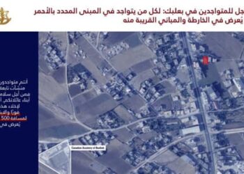 قراءة المزيدأنذر الجيش الإسرائيلي سكان مبانٍ في منطقة بعلبك بضرورة الإخلاء فوراً. وكتب المتحدث بإسم الجيش الإسرائيلي أفيخاي أدرعي على منصة...